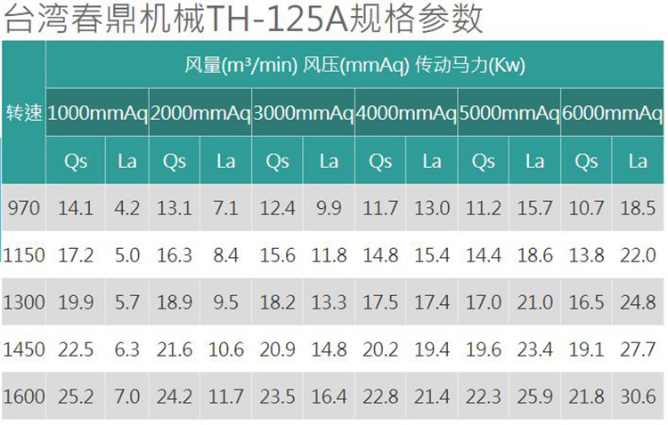 TH型羅茨鼓風機產品規格: