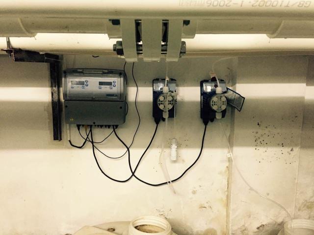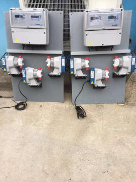三臺(tái)或者四臺(tái)加藥計(jì)量泵可選,投加絮凝劑計(jì)量泵, 加酸計(jì)量泵,加氯計(jì)量泵和除藻劑加藥泵。