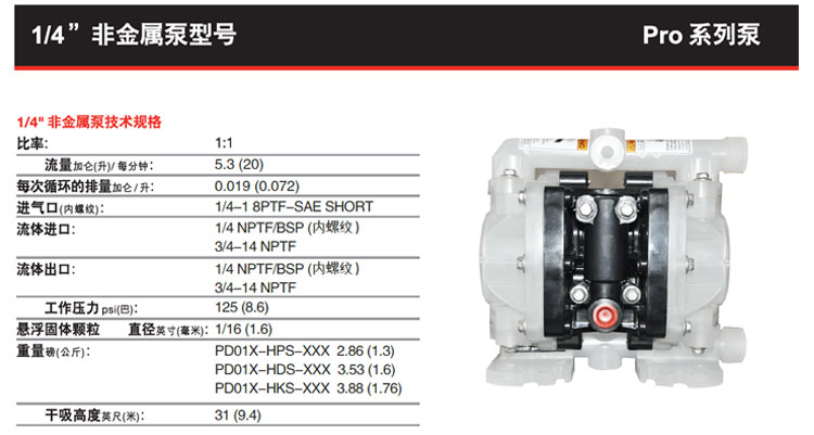 英格索蘭氣動隔膜泵1/4寸非金屬ARO隔膜泵PD01P-HPS-PAA-A