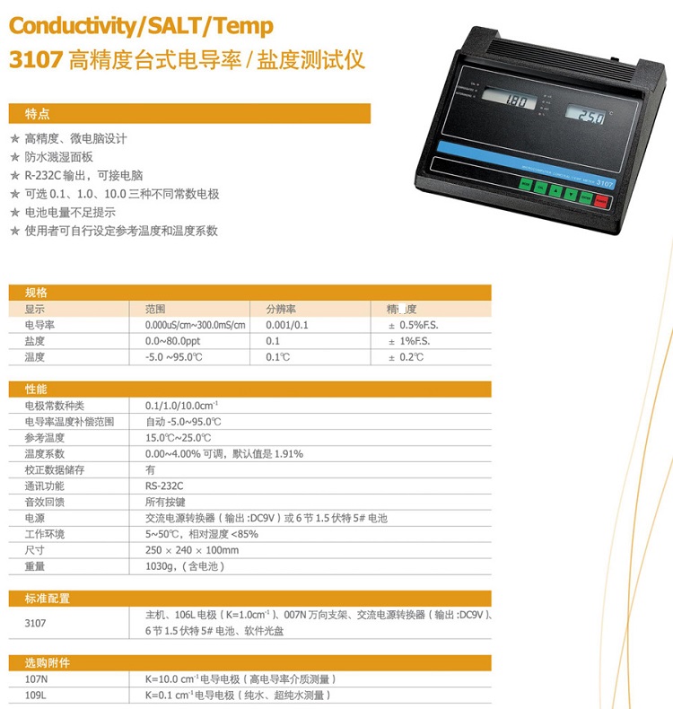 3107型高精度臺(tái)式電導(dǎo)率/鹽度計(jì)