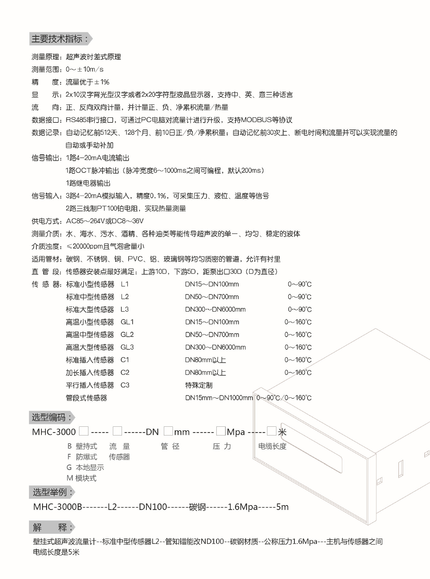 Apure愛普爾超聲波流量計TUF-2000S外夾壁掛式超聲波液體水流量計