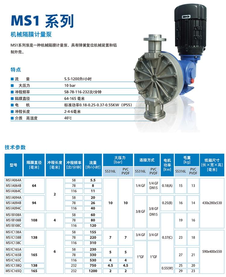 SEKO機(jī)械隔膜計(jì)量泵MS系列分為MS1、MS3、MS4三個系列