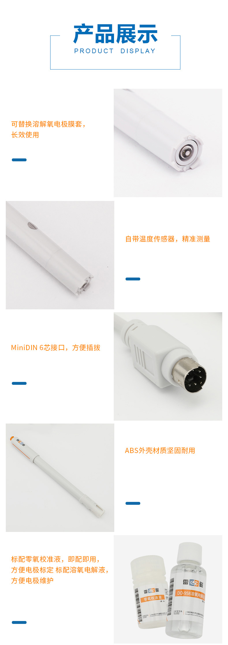 雷磁(leici)溶解氧電極DO-958-L 實驗室電極傳感器探頭ABS外殼材質電極