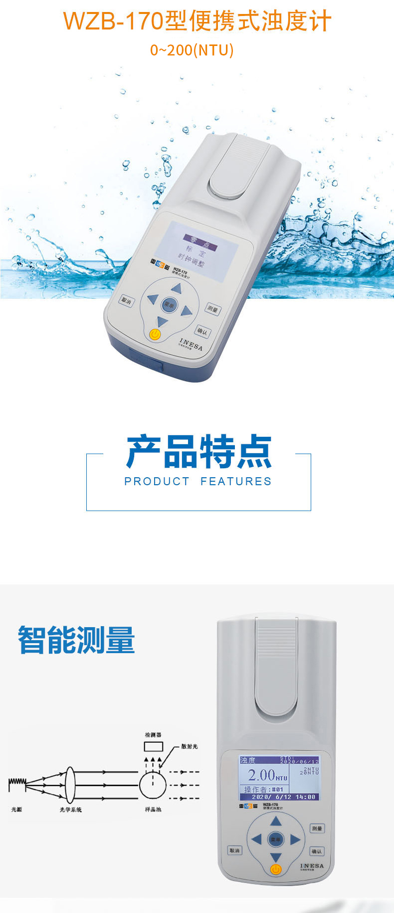 雷磁(leici)WZB-170型便攜式濁度計標準水質分析儀量程自動切換濁度儀