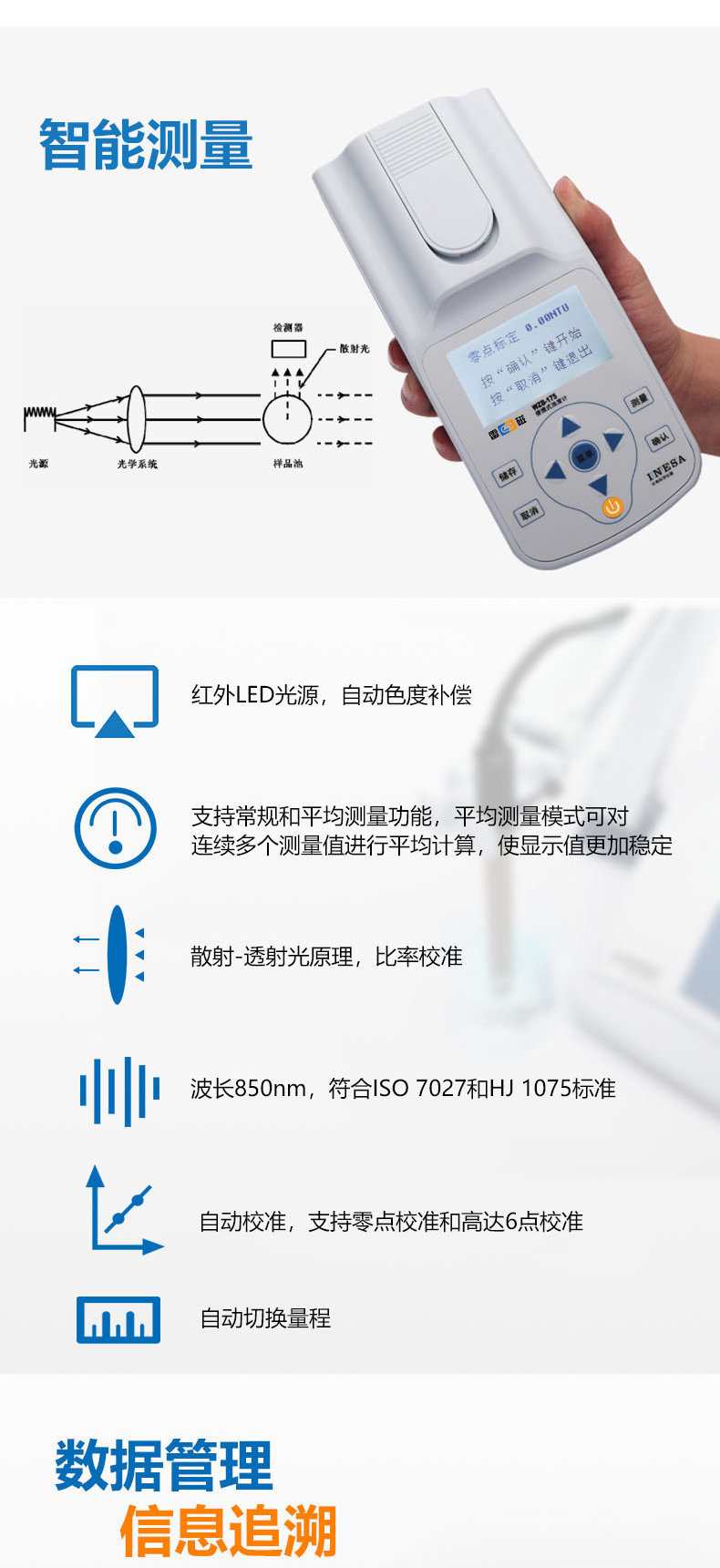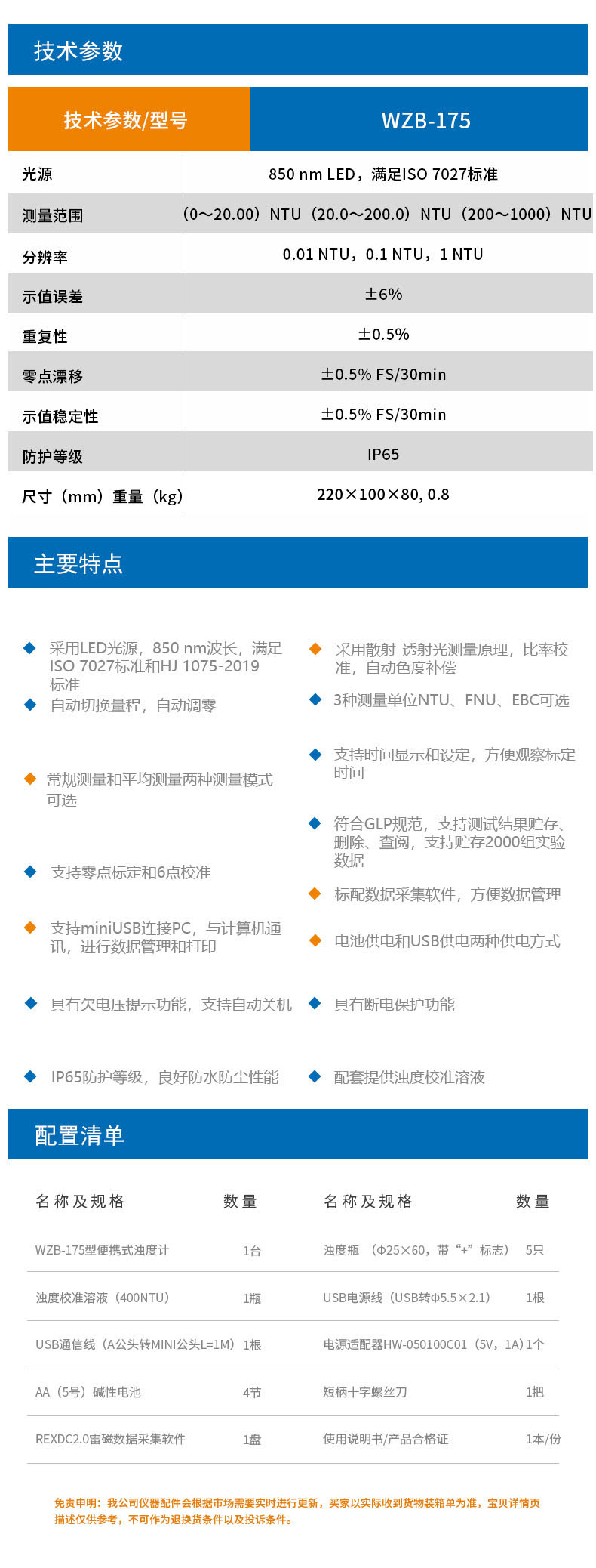 雷磁(leici)濁度儀WZB-175型便攜式濁度計水質分析儀標準自動色度補償