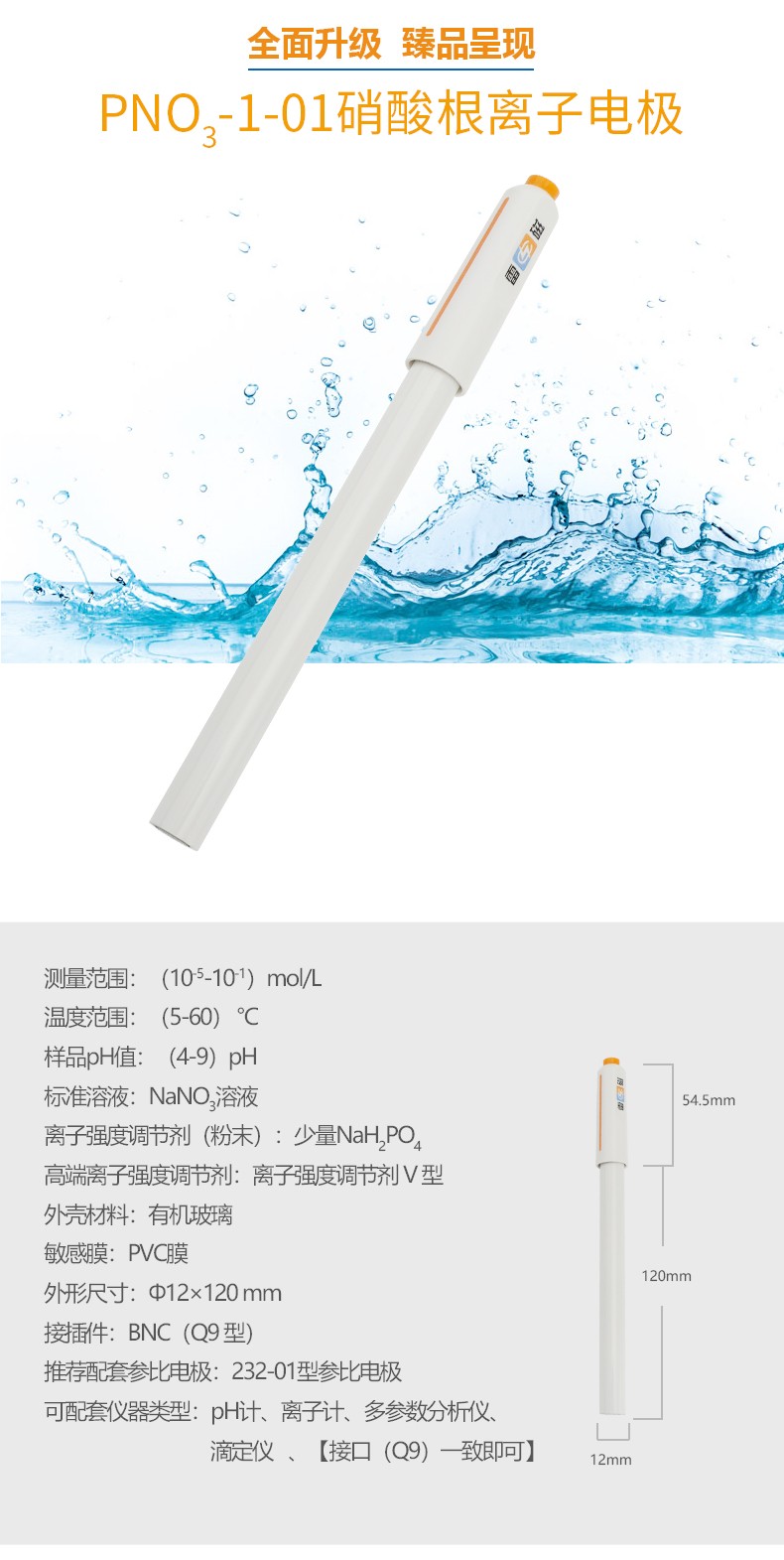 【雷磁】離子計復合電極探頭 PNO3-1-01型硝酸根離子電極