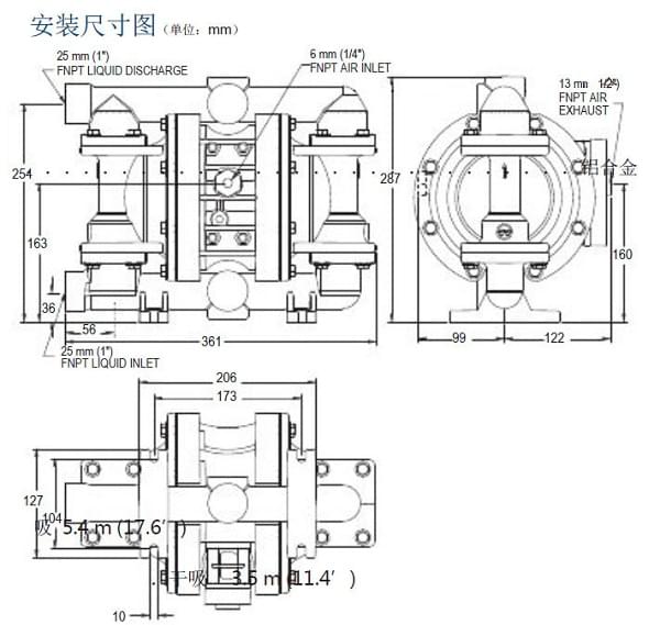 【鋁合金氣動隔膜泵】威爾頓隔膜泵P200/AAPPP/NES/NE/ANE/0014技術參數